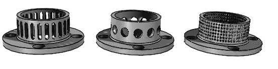 b、大圓孔主要用于普通混合工藝中減小物料顆粒尺寸。頭內圓形通孔使介質更好地作環形運動,適用于中等粘度物料的大循環。