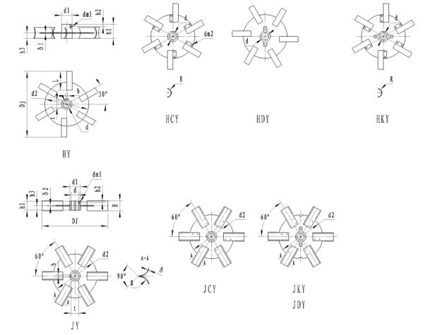 64、半圓弧對(duì)開(kāi)圓盤渦輪式HDY 65、半圓弧可拆對(duì)開(kāi)圓盤渦輪式HKY 66、箭葉圓盤渦輪式JY 67、箭葉可拆圓盤渦輪式JCY